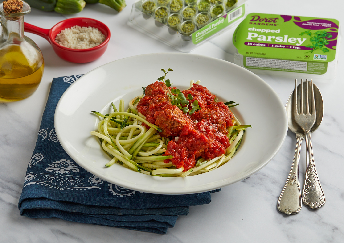 When using Dorot Gardens’ parsley cubes, it’s important not to thaw them before adding to hot dishes; this preserves their texture and flavor. If used in cold dishes, Pop the desired amount of cubes in a small dish and allow to defrost, about 5-10 minutes. If you need them faster you can microwave the cubes in a microwave-safe bowl.