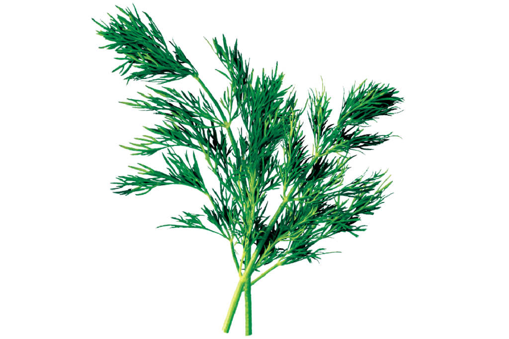 Dill is a delicate, feathery herb from the parsley family, prized for its bright citrus and mild licorice notes.