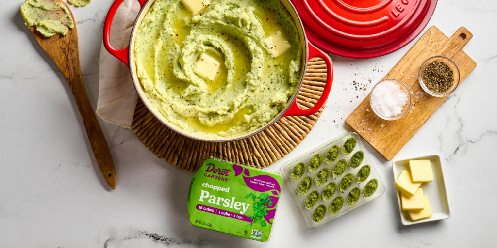 Dorot Gardens cubes solve the problems of wilted herbs and lost flavor. They’re especially handy when a recipe calls for a small amount of parsley and you don’t want to buy an entire bunch. You can find Dorot Gardens products in the frozen vegetable aisle of many grocery stores. Use our store locator to see where they’re available near you.