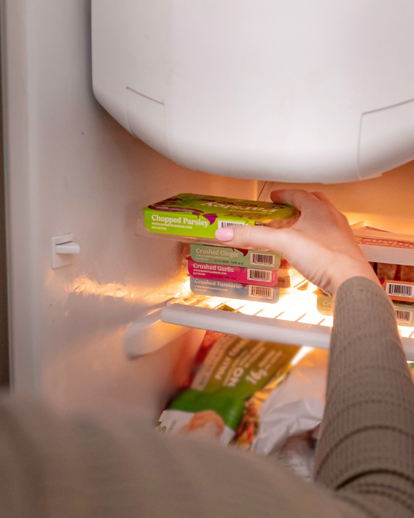 It may be best to wash and dry the leaves thoroughly, then form them into a “log” in a freezer bag, squeezing out air before placing it in the freezer. You can pull the log from the freezer and slice off what you need. If you’d prefer a more consistent option, Dorot Gardens makes this easy with Dorot Gardens Chopped Parsley cubes – pre-portioned and freezer-ready, so you can use exactly what you need and keep the rest frozen.