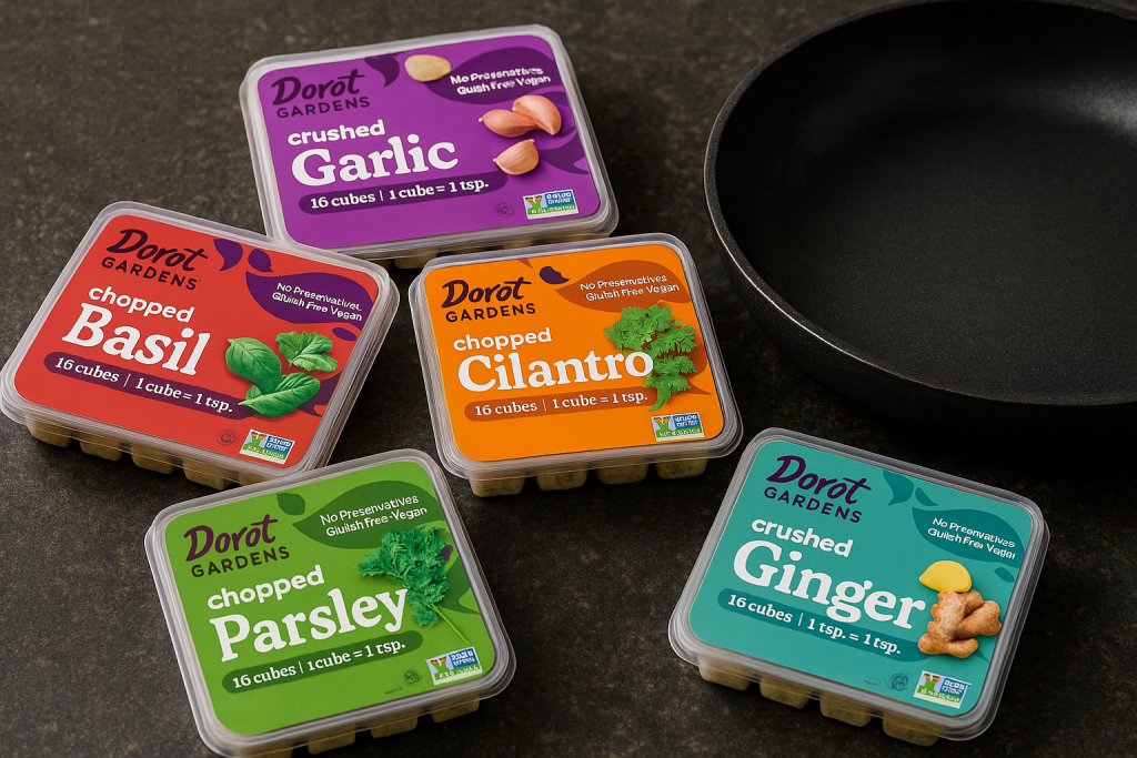 Dorot Gardens frozen cubes make everyday cooking easier. They are flash-frozen in pre-measured portions, so you get fresh garlic and herb flavor without any peeling, chopping or measuring.