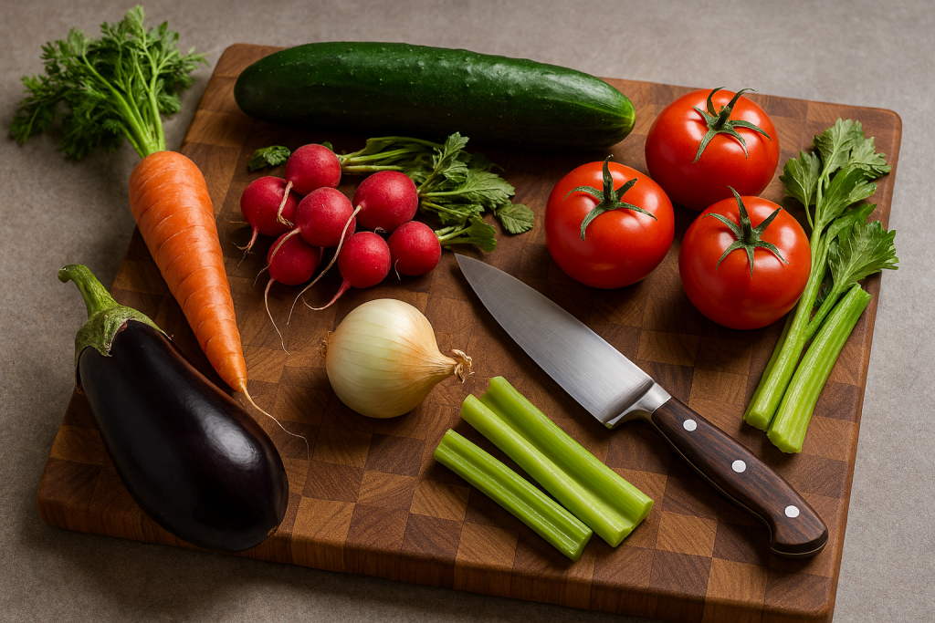 A large, thick wooden cutting board, especially an end-grain board, is both practical and beautiful. End-grain boards are gentle on knife edges, long-lasting, and have that artisan look cooks love.